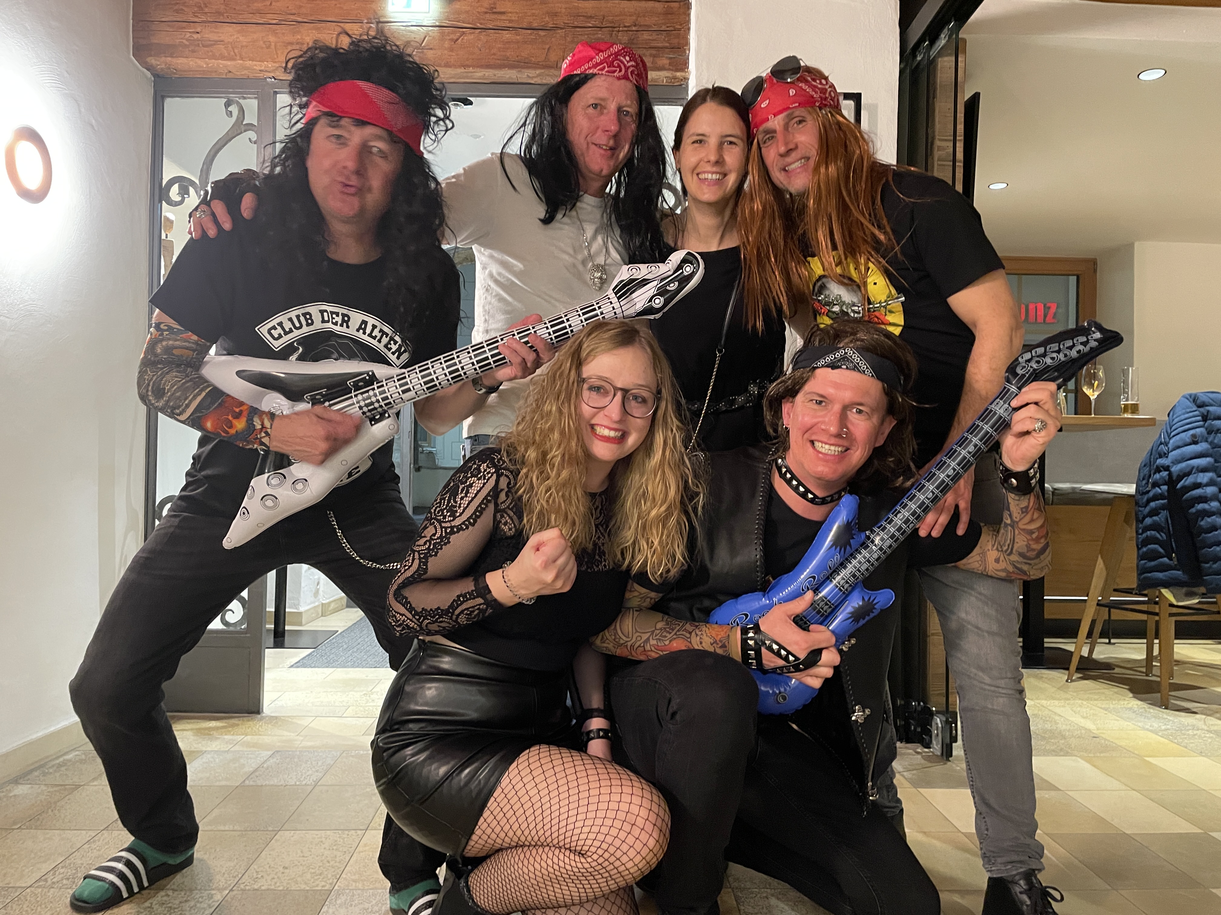 Das traditionelle Abendprogramm am Freitag stand dieses Jahr unter dem Motto „Rock“. Mit Lederjacken, Stirn- und Armbändern, Tattoos und schwarzen T-Shirts bekannter Rockgruppen sowie passender Musik wurde das Tanzbein geschwungen und bis spät in die Nacht gefeiert.