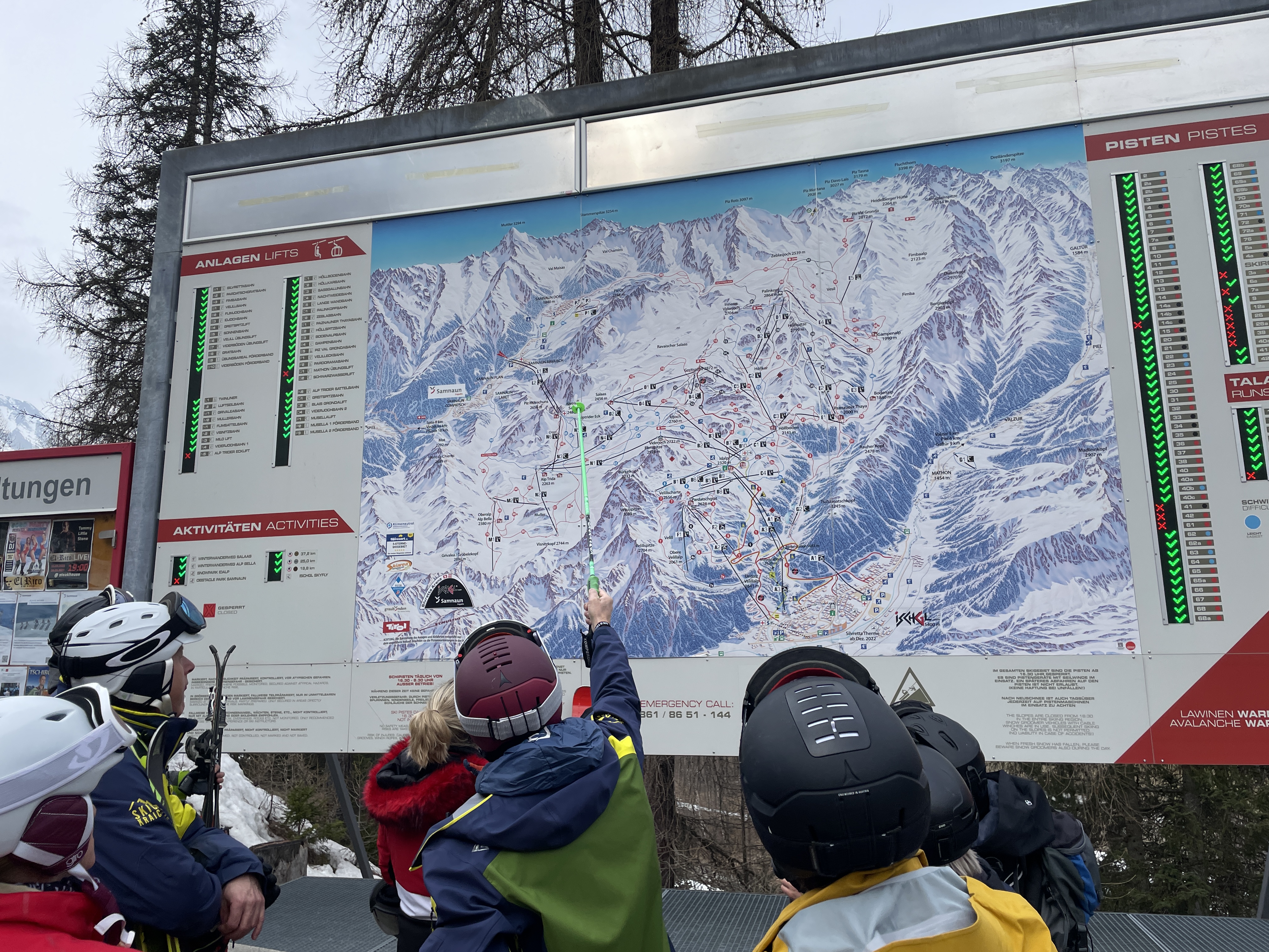 An den beiden Folgetagen wurde das bekannte Skigebiet Samnaun/Ischgl angesteuert. Sonntags konnten am letzten Tag die hervorragenden Pisten in Schöneben (Südtirol), direkt hinter dem Reschenpass, erkundet werden.